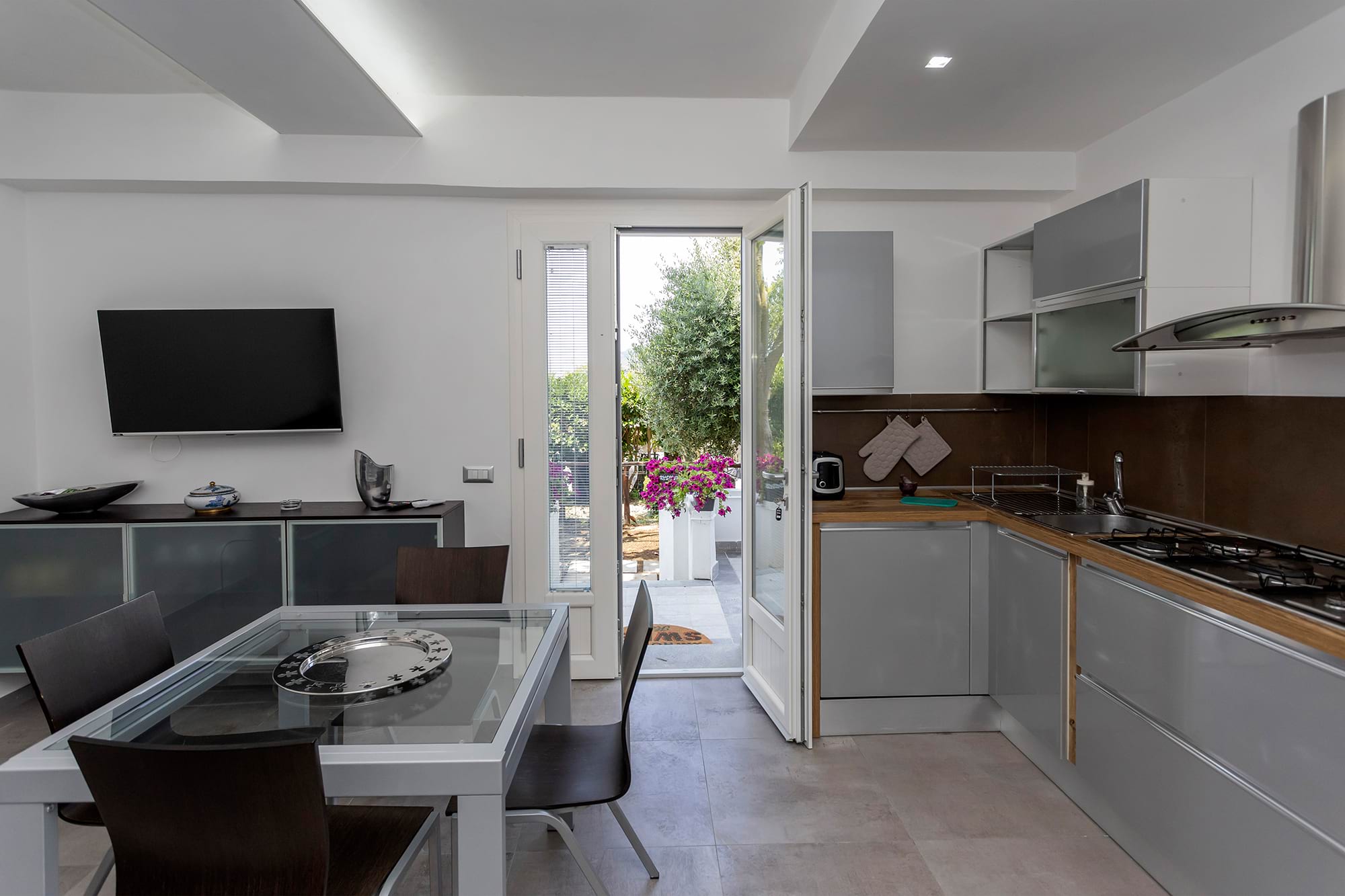 The house consists of a double bedroom, a living room where guests can use the double sofa bed, a fully equipped kitchen, and a bathroom. The house is very special, furnished in a modern style and meticulously cared for in every detail.