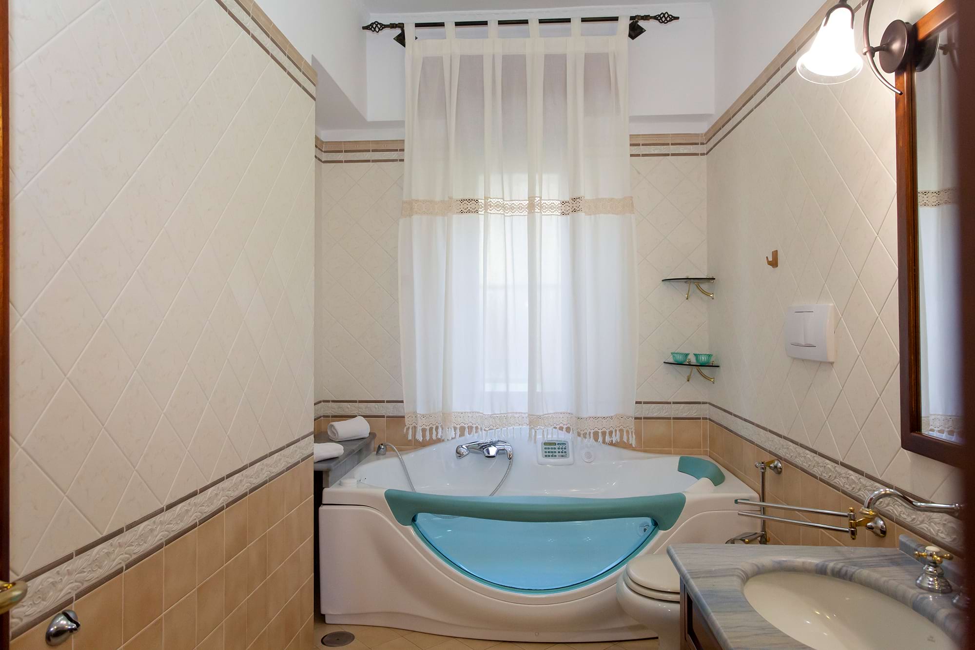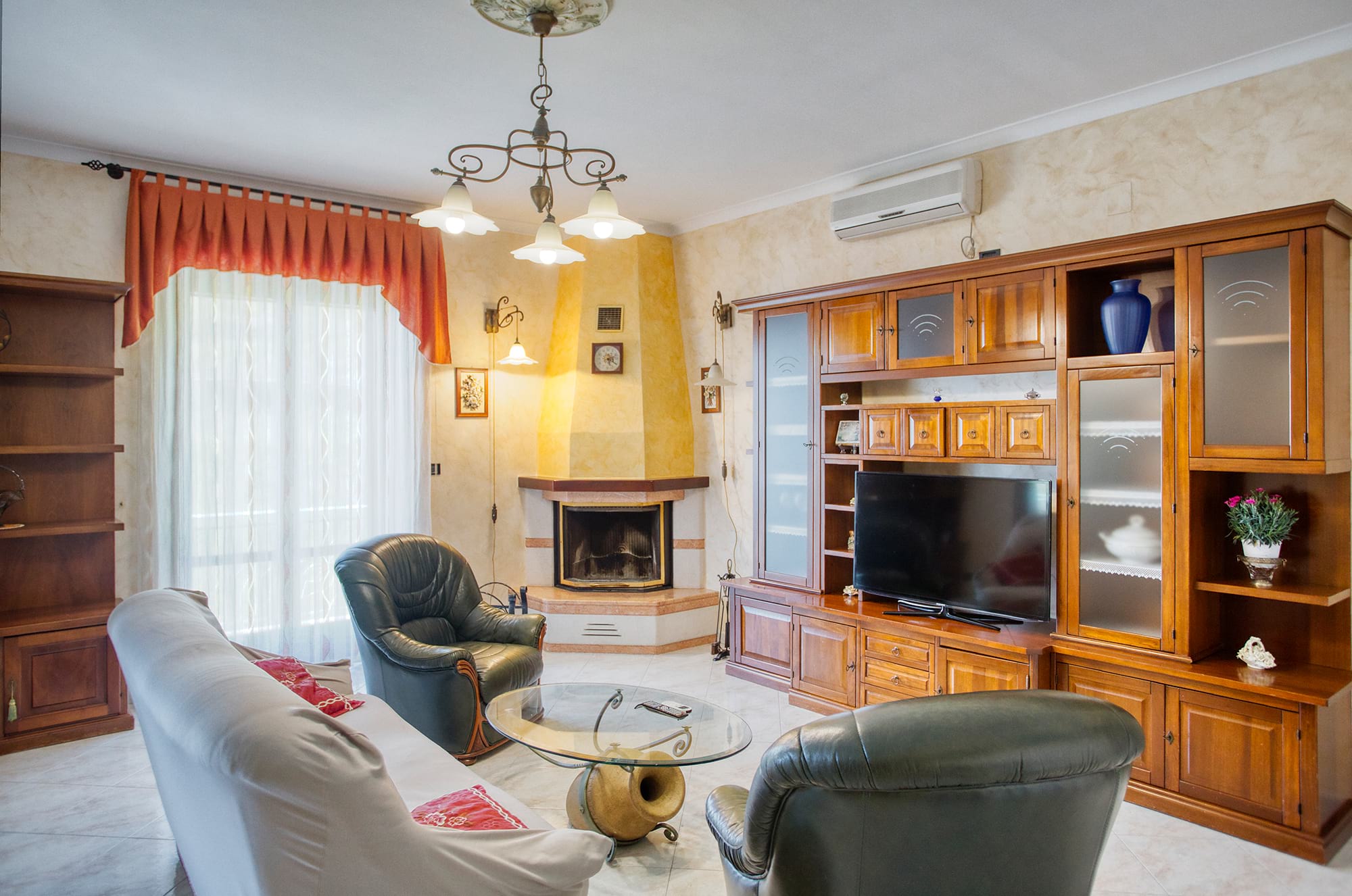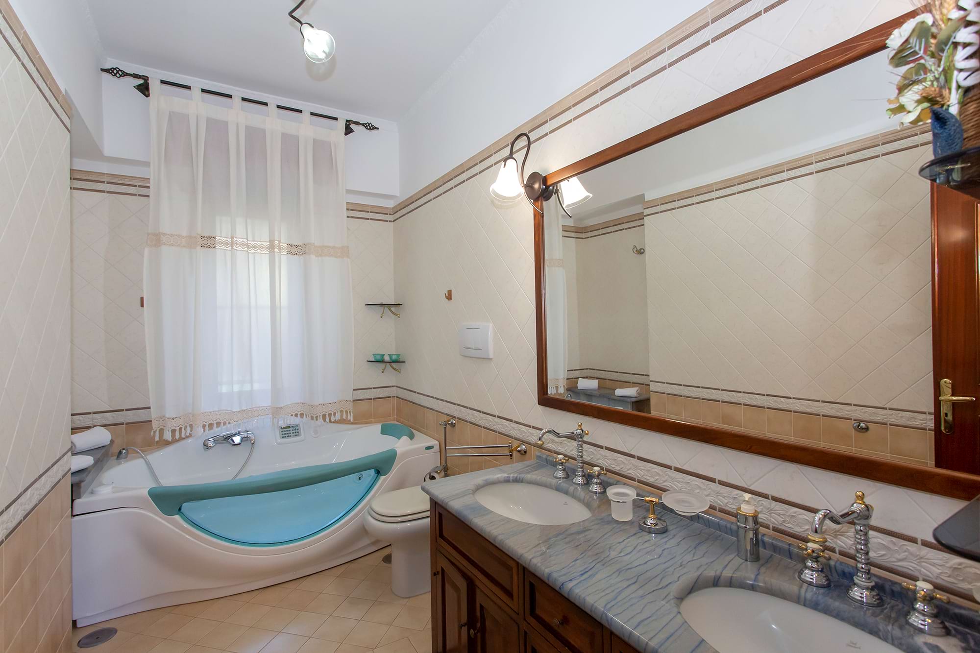 consists of three well-lit bedrooms, two bathrooms, one of which has a Jacuzzi, furnished living room , kitchen, and private sea-view terrace equipped with deck chairs and table . The rooms of House Charme degli Dei are very spacious and make for a truly comfortable vacation. The apartment is equipped with wi-fi connection, private parking, fireplace, heating, air conditioning, and washing machine and dishwasher.